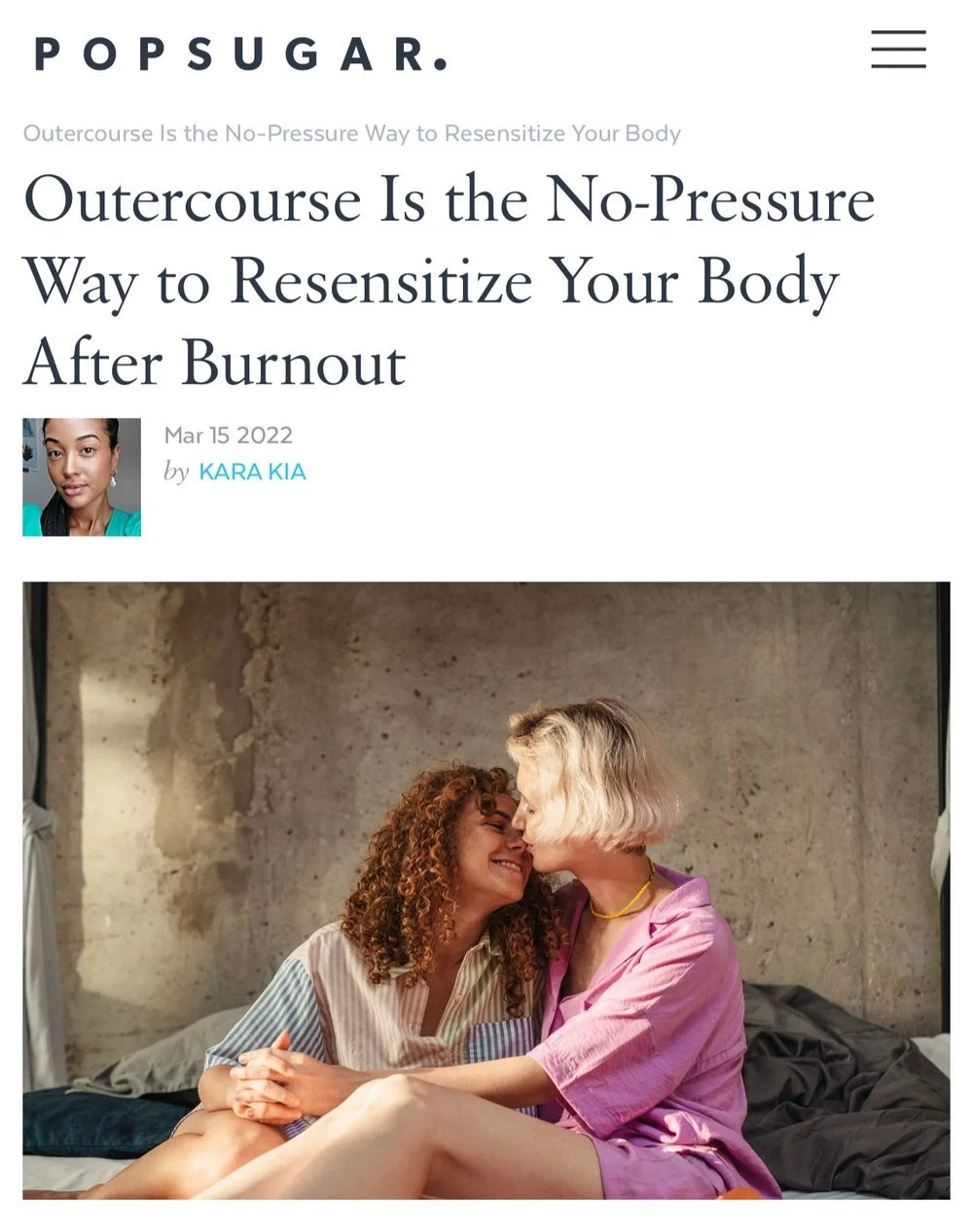 Popsugar - Outercourse Is the No-Pressure Way to Resensitize Your Body After Burnout 15 Mar Written By Madalaine Munro Madalaine Munro